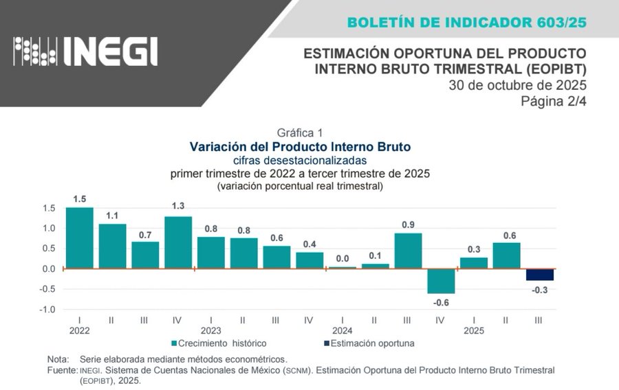 Contáctanos Se contrae 0.3% economía mexicana en tercer trimestre 31 de octubre del 2025 * Cae ex jefe policiaco de Tabasco ligado a Bermúdez * TEPJF revoca las multas por los acordeones . Se contrae 0.3% economía mexicana en tercer trimestre. La economía de México se contrajo un 0.3% en el tercer trimestre con respecto […]